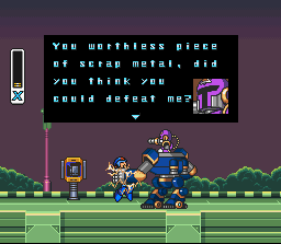Quand il reste deux barres d'énergie à notre héros, il lance une sphère d'énergie qui nous paralyse, et attrape X, puis se moque de lui dans le plus pur style méchant de dessin animé (« mouahahaha t'es bon pour la décharge »).