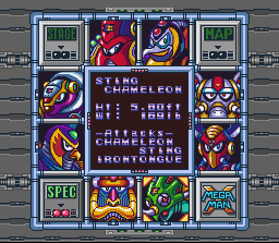 Refaisons un flashback. Etant encore jeune, fou et ignorant (plus qu'aujourd'hui, c'est dire), je connaissais peu de choses au système de faiblesses des boss dans la série, mais avait compris que « la glace ça fait mal au Mandrill ». Malheureusement, je ne voyais pas comment faire rendre gorge à Sting Chameleon.