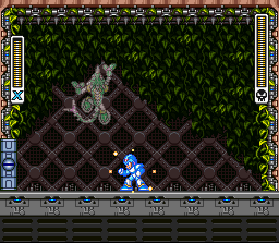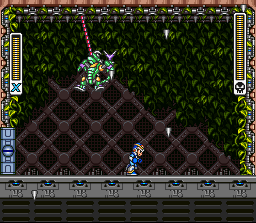 Car cet infâme croisement d'un iguane bourré et d'une machine à laver en fin de garantie a un des patterns les plus vachards du jeu : il peut se rendre invisible pour passer dans votre dos (ce qui fait perdre un ou deux missiles à chaque fois, car on ne peut s'empêcher de le canarder), et passe la plus grande partie du temps dans l'angle supérieur opposé de la pièce, à vous canarder de piques. Et si on veut sauter pour se mettre à son niveau et le dézinguer, le plafond fait mal quand on le touche. Capcom, enfoirés !