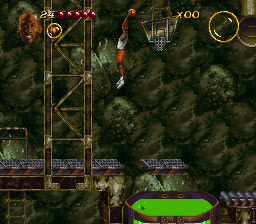 Michael Jordan sur Super Nintendo. Je n'en ai pas rêvé, ils l'ont tout de même fait. Soit. Maintenant qu'on l'a dans les mains, autant voir comme il se défend. J'ai payé, j'ai le droit. Le postulat de l'objet : votre équipe des Bullots de Chicago – les Chicago Bulls pour les non-anglophones – s'est mystérieusement vaporisée à votre retour dans les vestiaires après une séance de dédicace de votre dernière godasse. Un message au marqueur épais est écrit sur le pense-bête collé à votre casier : "Mardi – anniversaire de Mamie/ Jeudi – penser à prendre la trithérapie de Magic Johnson chez le pharmacien/ Aujourd'hui – J'ai kidnappé tes coéquipiers pour en faire des mutants ou les vendre à une boucherie halal. Dr. Cranium Maximus, bisous". Peste, la journée s'annonce chargée et c'est mal engagé pour les play-off.