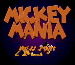 Il ouvre la boite et en sort une cartouche, qu'il s'empresse d'insérer dans la console qu'il appelle SNES. Il essuie l'écran poussiéreux. « Sony Imagesoft » s'inscrit sur l'écran, sur une console Nintendo. Fou. Apparaît ensuite la mention « Disney Software ». Puis Mickey Mania, « developed by Travelers Tales ». Cet homme disait donc vrai. Un écran titre apparaît. Mickey Mania, encore une fois. Mickey se promène gentiment avec Pluto. Écran titre austère, je crains le pire.