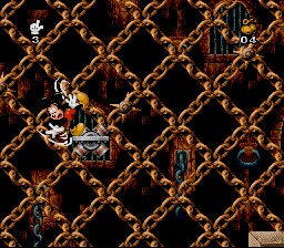 « - Donc comme je le disais avant que tu ne m'interrompes grossièrement, Le prince et le Pauvre constitue le dernier monde de Mickey Mania. Ce court métrage est sorti en 1990, comme Viewtifulink d'ailleurs (un grand homme petit, un grand homme tu sais…). Comme quoi, 1990 est un bon Millésime. Bref. Chaque monde est divisé en un nombre de niveau variable selon les mondes. Le tout colle vraiment au plus près du support original, on se surprend à reconnaître des détails qui semblaient insignifiants dans les courts métrages et qui ont intelligemment étés intégrés dans le jeu. Plus d'une fois on s'exclamera « Ho les fous, ils l'ont mis ! ». Les développeurs ont réussi le tour de force de retranscrire exactement les grands classiques que l'on adore tout en ne tombant pas dans le contemplatif. Ils ont même poussé le vice jusqu'à nous faire rencontrer tous les Mickey passés, dessinés comme à l'époque. Allez je te montre. »
