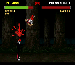 Mais peu nous chaut les subtilités - ou plutôt leur absence - des modes de jeu. Si on enfourne virilement une cartouche estampillée Mortal Kombat toutes babines humides, c'est bien pour une chose et une seule : tartiner le moindre arpent de mur de flots vermillons. La saga a presque exclusivement acquis sa notoriété avec sa propension à payer généreusement sa tournée de Saint Emilion. Pour cette seconde fournée, le jeu ne faillit pas à sa réputation et ouvre grand les vannes.