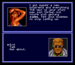 Et tout ça sans trop être lassé par l'environnement graphique et sonore. Ce n'est pas à tomber, mais ça tient la route. Palette cohérente, décors un poil répétitifs mais après tout, c'est la monotonie de la ville dans toute sa splendeur, idem pour la musique qui manque un peu de variété mais dont la "couleur" est fort sympathique dans le paysage de la SNes. Un ou deux thêmes pourront vous rester dans l'oreille une fois la console éteinte (en même temps, en l'écoutant en boucle pendant trois heures...)