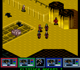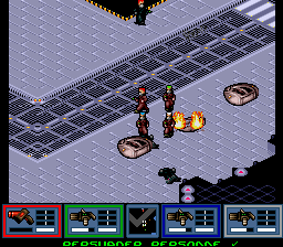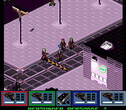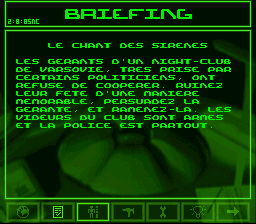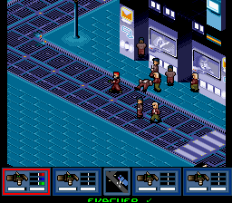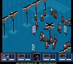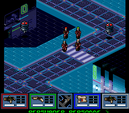 Malheureusement tout n'est pas aussi gris qu'il le faudrait. Syndicate est surtout connu comme étant un jeu d'ordinateur, et ce n'est pas pour rien. Les versions pour consoles sont amputées de pas mal de choses, et c'est bien dommage. Déjà, le moteur graphique n'a rien à voir avec celui du grand frère, ici on a une sorte de version cartoon mignonette qui cache difficilement les faiblesses de la Super Nintendo. Attention, je ne dis pas que c'est moche, mais ça n'a pas la classe des versions Amiga ou PC. De plus, pas mal de détails superflus et donc essentiels ont été oubliés, les missions sont moins variées, c'est bien triste. Et n'oublions pas la maniabilité, qui sans être vraiment défaillante fait bien sentir que le jeu a été conçu pour un clavier et une souris.