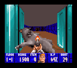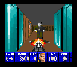 Oui non parce que outre la jouabilité, l'immersion, l'expérience et blablabla, Wolfenstein 3D est surtout réputé car on y castagne du nazi, la bonne poire des scénaristes quand il faut trouver un méchant à opposer à notre héros bien propre sur lui-même qui n'aurait jamais idée de génocider des juifs et des pédés, lui. Seulement, chez Nintendo, on se contente du panache d'avoir sauvé une princesse dans un donjon où le boss final aura pris soin de disposer des objets utiles à la progression du héros alors pensez-vous, il ne faut pas emmerder les joueurs avec des national-socialistes et comme on ne va pas non-plus demander aux développeurs de refaire les ennemis, ils devront simplement défigurer les croix-gammées et les portraits du führer qui ornent l'essentiel des pans de mur du château de Wolfenstein. Ah et puis vous me recolorerez ces tâche de sang pour en faire de la sueur, c'est plus amusant, et puis la Horst-Wessel-Lied en intro, c'est un peu de mauvais goût les mecs. Mais à la politique de Nintendo s'ajoutaient les foudres des allemands encore chatouilleux sur le sujet et les organismes de protection des animaux qui ont vite fait de réclamer que l'on remplace les chiens par des rats mutants.