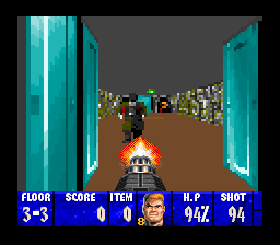 Il y a tout dans Wolfenstein. Tout ce qu'on a retrouvé par la suite dans les meilleurs doom-like. Il faut savoir qu'il fût une époque où un FPS n'était pas constitué de vagues couloirs sinueux, de barres de vie auto-régénérantes et de cinématiques lourdingues. Et pourtant, l'immersion de Wolfenstein 3D est simplement exemplaire. Aussi tôt l'intertitre disparu, vous voici livré à vous-même. Il vous faut quitter cette prison à tout prix mais la panique laisse place à la confiance en soi. Au bas de l'écran, la tronche de BJ. VOTRE tronche. Nous sommes dans un shooter à la personne est celui qui voit, c'est vous. Vous ne contrôlez pas BJ, vous êtes BJ et vos ancêtres seraient fiers de vous si vous pouviez vous démerder pour en finir avec le IIIème Reich. (Quoique pour les résidents d'Alsace-Lorraine, rien n'est moins sûr)