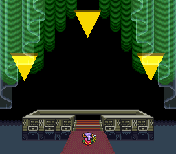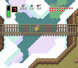 Le monde est réellement immense. D'ailleurs un petit passage en mode carte version mode 7 (celui qui zoome et qui tourne) vous prouvera vite fait que vous n'êtes pas au bout de vos peines. Et quand vous aurez épuisé la carte, le monde sombre s'offrira à vous, copie exacte en taille du monde de lumière. Et c'est ça LE concept novateur de Zelda 3. À partir d'un certain point du jeu, vous récupérerez un miroir qui vous permettra de passer à loisir d'un monde à l'autre, seul chemin possible pour accéder à des endroits a priori inaccessibles. Cette seule idée novatrice refond entièrement le gameplay et lui offre une nouvelle dimension. Grandiose.