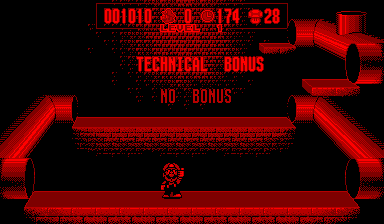 Vous êtes déjà en train de pleurer sang et larmes sur votre Virtual boy, et c'est à peine si visuellement vous remarquez une progression. Inconcevable. Mais il n'y a pas que ça. Musicalement, c'est le niveau 0, le sous sol / paiement du parking de la machine. Koji Kondo était malheureusement à une cure thermale cette semaine là, et c'est un stagiaire aphone, sourd, et ne maniant pas le development kit qui a du s'en charger. Le pauvre est mort dans d'atroces souffrances, une corde autour du cou, un tuyau de gaz dans la bouche, crible d'une vingtaine de balle de M16, le tout assorti gaiement d'une manette Virtual Boy dans l'anus. La police penchait sur la thèse du suicide fétichiste irrésoluble.