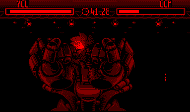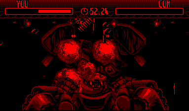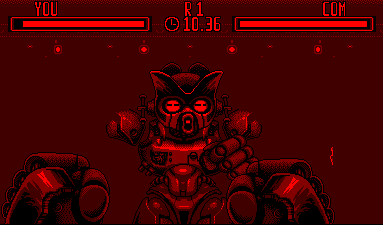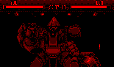 Et bien oui, on peut dire ça, c'est amusant. On doit donc frapper l'adversaire qui va bien entendu tenter d'esquiver les coups (ah ah comme il est crédule), et même aller un peu plus loin, à savoir nous les rendre (ah ah toujours aussi limité le pauvre). On agit pour ce faire dans les 8 directions. On frappe où le robot d'en face ne se protège pas. Et on doit l'achever comme une merde. Rien que du classique.
