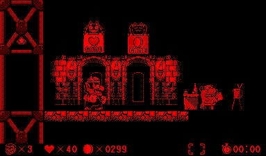 Là, pareil. L'aventure de merde. L'intro du jeu nous explique le contexte. Wario prend ses vacances bien méritées, peinard. Il sirote une tequila con lecce sur son transat, et voit en arrière plan (de ce qui à mes yeux est la plus belle intro Virtual Boy) des petits monstres apporter des trésors dans une cache. Il les regarde, les défonce, et admire le trésor en bavant. Pas de bol, la porte est scellée par différents objets, qui se répartissent partout sur la carte lorsque Wario arrive. Et il tombe dans un cul de basse fosse. Début de l'aventure.