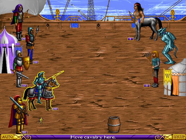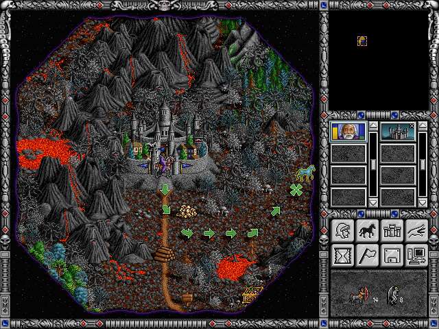 Dernier élément marquant de la série, cible privilégiée de ses détracteurs : le tour par tour. Dans King's Bounty vous aviez un temps limité pour mener à bien votre mission et vous pouviez vous baladez à loisir sur la carte. Dans HOMM tout fonctionne au tour par tour. Chaque héros a une jauge de déplacement limité par jour. Les constructions dans votre château sont limitées à une seule par jour, et les créatures apparaissent en début de chaque semaine. Bienvenue dans le management en finesse, puisqu'autant vous dire qu'il faudra la jouer vicelard pour exploiter tous ces rouages de la meilleure façon qui soit.