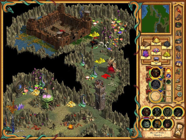 Comment obtenir ces ressources ? Simple : certaines sont éparpillées sur la carte, gardées ou non par des monstres errants (neutres donc) et n'attendent que le passage de votre héros, mais le moyen le plus sûr reste encore de prendre une mine correspondant à la ressource qui vous intéresse. Les mines sont toujours gardées, et autant vous dire que les mines d'or se méritent plus que les autres (comprenez gros dragons burnés ou phœnixs incandescents à l'entrée…). Mais une fois qu'elles sont vôtres, tous les jours on touche (le double sens de cette phrase est redoutable).