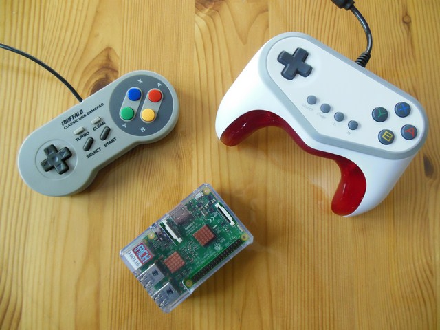 Mais ce n'est que partie remise. Le stick marche aussi très bien en branchant la Pi à l'extérieur de la boite (le PCB des boutons se relie au Pi par USB par un cable biiiieeen trop long pour rester plié sagement dans sa boite, à croire que les designers du Picade savaient et ont créé cette alternative de « bête stick à part »). Ce qui me permet d'investir dans quelques manettes dédiées, et des dissipateurs de chaleur (car le Pi 3 chauffe un peu trop comparé à ses frères). Je vous conseille fortement les manettes USB SNES d'iBuffalo, qui se trouvent pour trois fois rien sur la toile et qui sont de très respectables copies, ou les manettes du jeux Pokken Tournament, produits officiels Nintendo qui ressemblent à des manettes Super Nintendo avec une ergonomie moderne, pour un prix correct et compatible PC sans soucis. Même les manettes de consoles modernes marchent sans aucune difficulté.