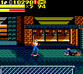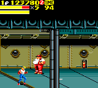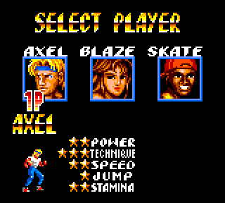 Et nos deux compères sont accompagnés d'un petit nouveau, Skate. L'adolescent cool, la casquette rouge en arrière, de type africain (le type, pas la casquette). Et comme son nom l'indique, il fait du… Skate. Non, je plaisante, ah ah cela se saurait. Oui, je plaisante beaucoup aujourd'hui, mais toi là qui me lis, tu as les yeux qui sentent le vice alors j'essaye de détourner tes mauvaises pensées… Skate est donc le djeunz cool des années 90. L'histoire ne parle pas de lui, qui est-il, d'où vient-il ? On peut supposer qu'Axel était un pote de son frère, frère qui a péris dans un accident de mixer, et qu'Axel s'est juré de veiller sur lui toute sa vie… Ou quelque chose de ce genre. Bien sûr Axel en bon décérébré veille sur lui en l'envoyant casser du méchants dans les rues. Skate n'a aucune capacité. Si j'étais bilingue je dirais qu'il est useless. Il va vite, mais tape avec ses petits poings de pré pubères sur des types qui font 4 fois sa taille. L'échec. Bon bref, on se retrouve avec notre brochette de héros, qui part sauver une nouvelle fois la ville.