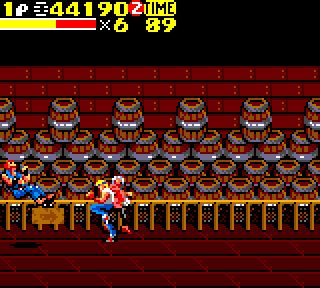 Et nos héros dans tout ça ? Et bien ils ont été mis à jour. Adieu le syndrome de diriger un golem de fer, tout lent. Ici place à la souplesse des personnages. Enfin ! On les dirige avec amour, pour castagner du vilain, et évincer le crime avec passion. Avec deux boutons les développeurs ont réussis à faire faire une multitude de coups à nos héros. On retrouve aussi la possibilité de faire un coup spécial, en restant appuyer sur le bouton 1. Les ennemis valsent, avec une facilité déconcertante, tant le maniement est exceptionnel.